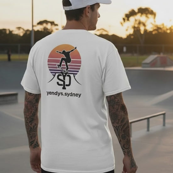 Skate the day, chase the sunset — the Mens Ramp Tee captures that golden-hour Sydney energy. Featuring a bold back print inspired by coastal skate parks and laid-back sessions that stretch into dusk, this tee blends street style with comfort. The midweight cotton build keeps it breathable and structured, perfect for rolling through the park or posting up beachside.