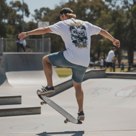 Fearless and full of attitude — the Mens Skull Tee brings coastal grit to Sydney streetwear. The bold back graphic turns heads at the park, the beach, or on the move, while the classic cut keeps things laid-back and wearable. Built from premium midweight cotton, it’s the perfect mix of durability, structure, and comfort — ready to ride wherever the day takes you.
